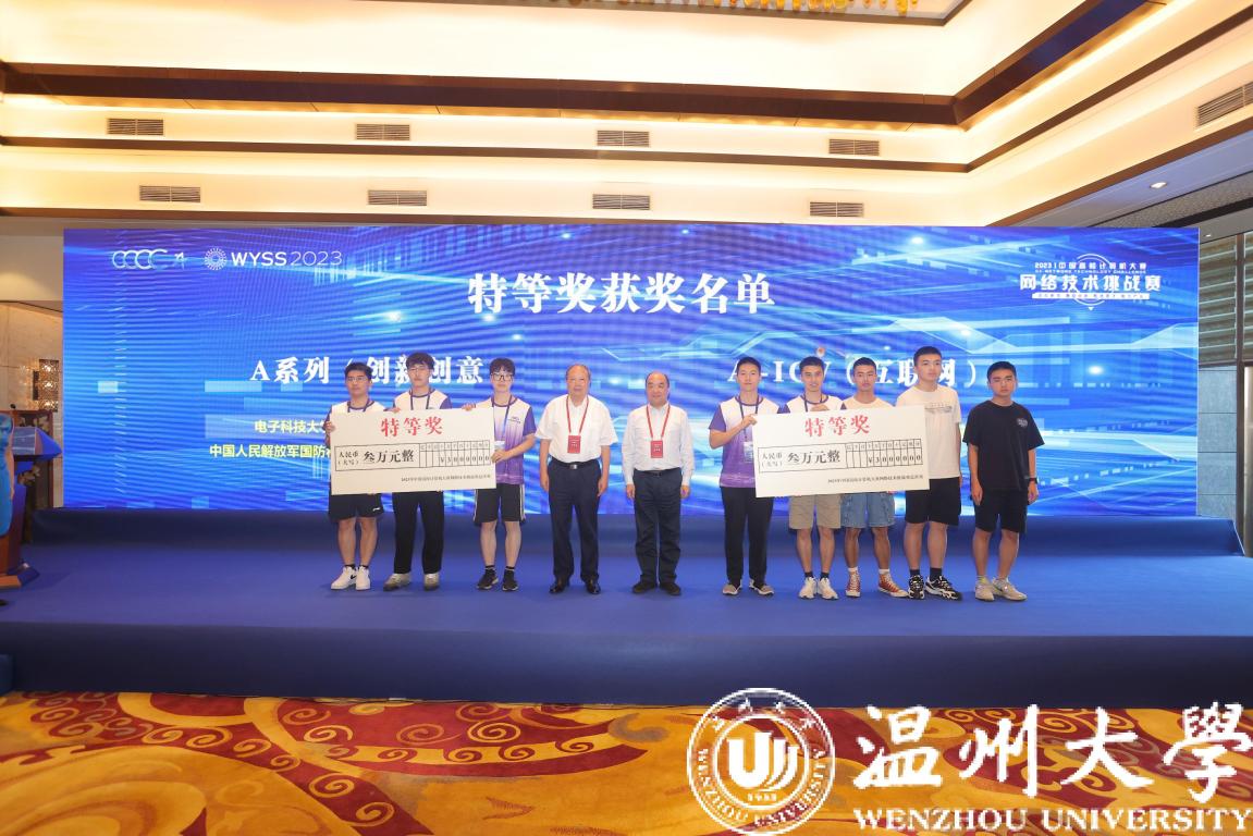 本届大赛还特别邀请到中国工程院卢锡城院士、中国科学院王怀民院士,为三支特等奖获得者团队颁发奖状,并对参赛学生予以勉励。