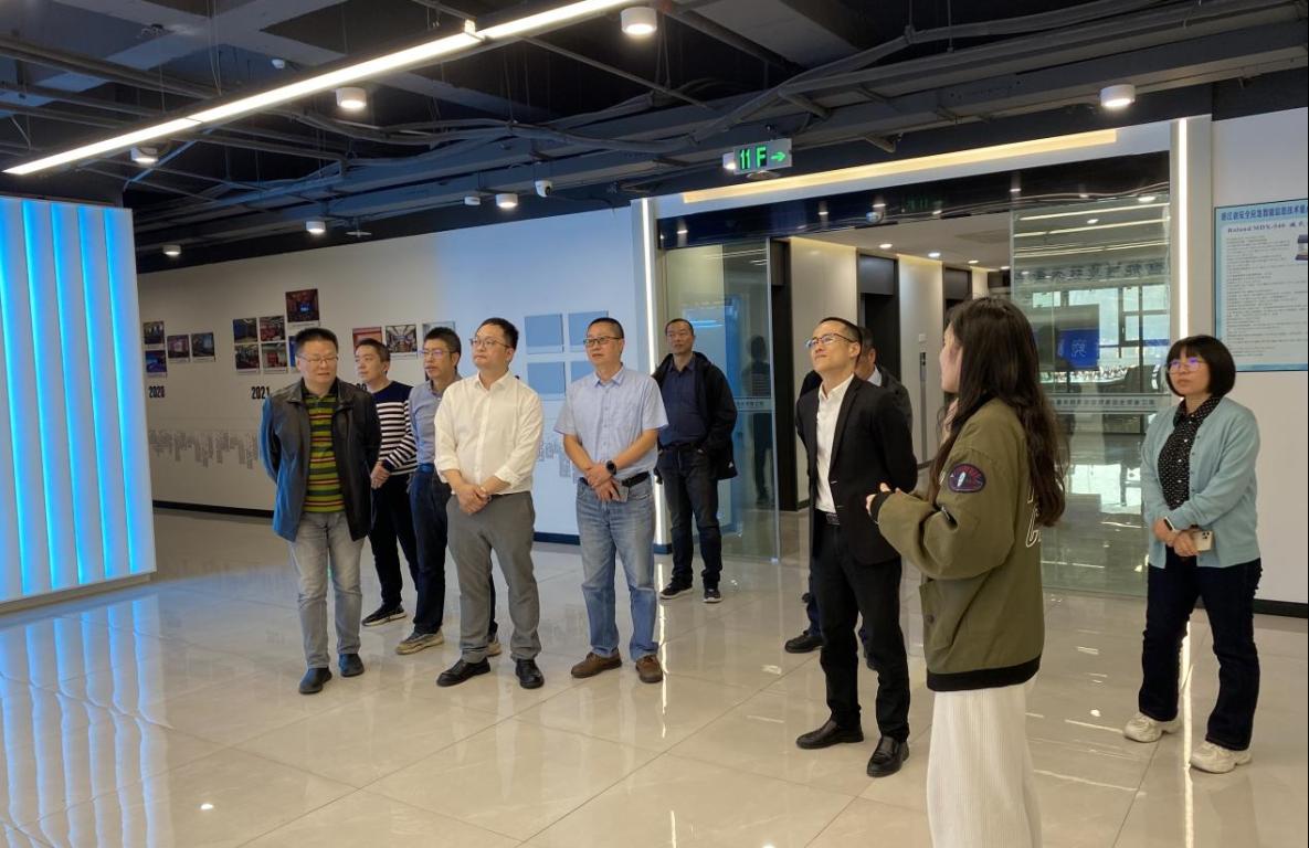 随后,浙江机电职业技术学院现代信息技术学院一行前往温州市数字经济研究院,参观浙江省安全应急智能信息技术重点实验室与温州市数字经济研究院联合展厅,深入了解研究院入驻企业的相关研发产品。