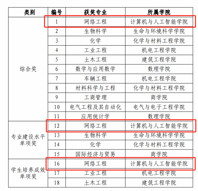 近日,学校发布《关于公布日本色情 2022-2023学年最具竞争力专业获奖名单的通知》(温大行政发〔2023〕110号),日本色情 网络工程专业分别荣获2022-2023学年最具竞争力专业综合奖、专业建设水平单项奖和学生培养成效单项奖,囊括了最具竞争力专业的全部奖项。