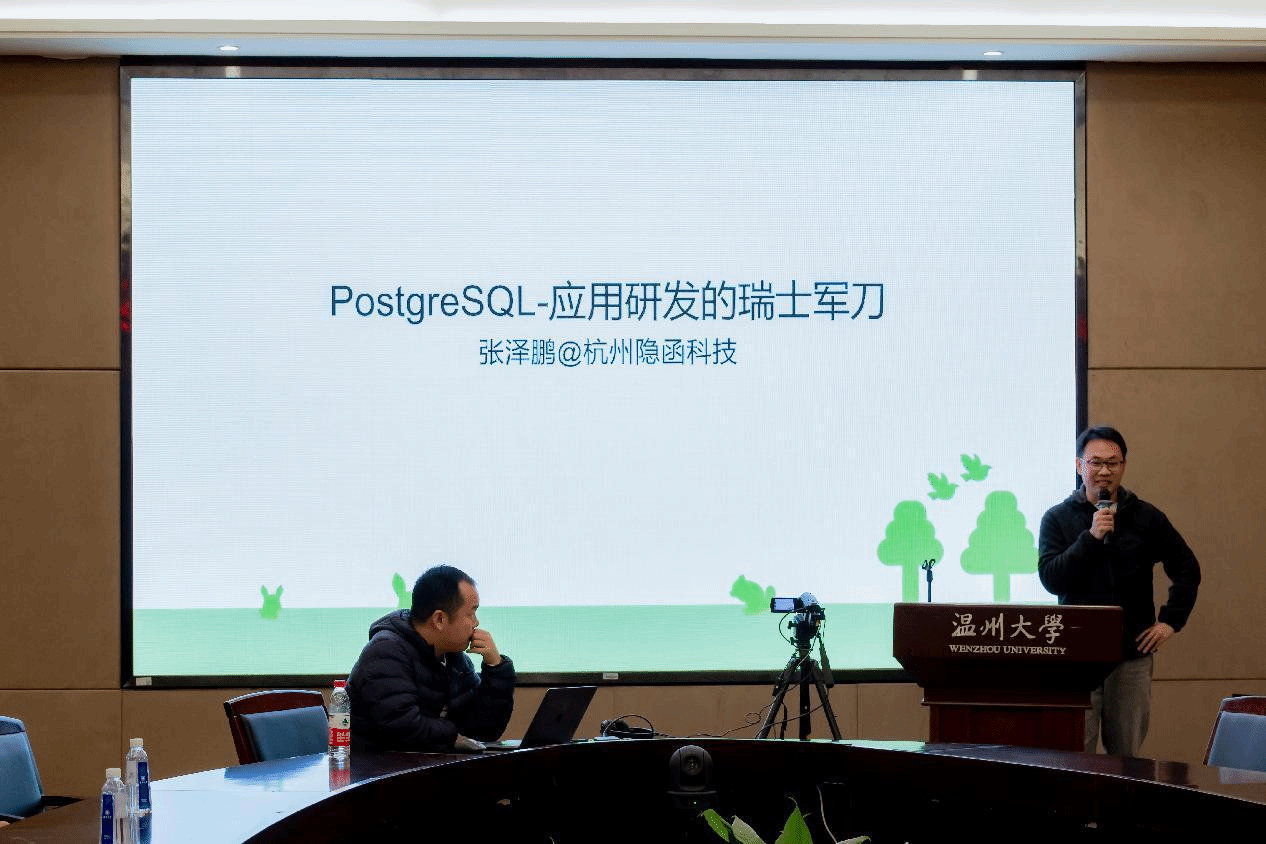 张泽鹏(杭州隐函科技有限公司创始人)以《应用开发者如何通过数据库插件开发提高工作效率》为主题,介绍如何把握应用场景中需求的深度剖析技巧,继而向在场学生讲解如何利用PostgreSQL插件等特性切实解决应用中的技术难点,深化了师生们对PolarDB/PostgreSQL开源数据库作为平台化产品价值的认知。
