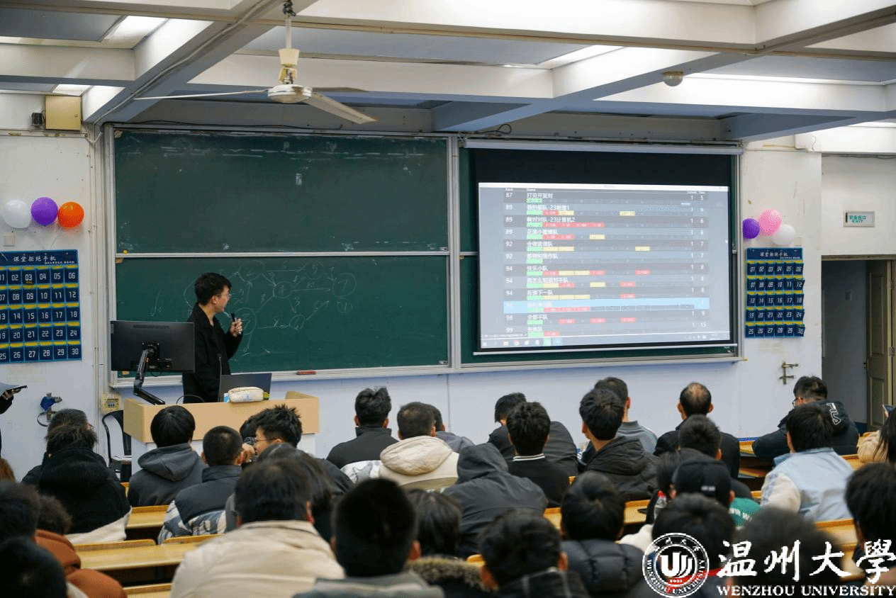 比赛现场战况焦灼,气氛热火朝天,参赛者认真思考,互帮互助,一双双神采奕奕的眼睛注视屏幕,键盘敲击声犹如打开计算机世界的大门。队员们于题海之中运筹帷幄,代码在屏幕上跃动,气球昭示着队友们的荣誉。首次通过一题的队伍由ACM老队员命题人亲自送上金色气球,这种首创做法更是吸引着大批人挑战还没有人通过的难题。经历了三个半小时的鏖战,共角逐出1支特等奖队伍,1支最佳女队,10支一等奖队伍,22支二等奖以及33支三等奖队伍。其中,由23生态莫皓翔、23大数据1班张宇濠和23人工2班毛烨超组成的“以下成绩全部无效”队荣获特等奖;由23电气1班金文清、23电气2班罗芷怡和23电气3班张涵组成的“萝萝山小分队”队获得“最佳女队”称号。获奖最多的是计算机专业:23计算机1班48人参赛,40人获奖;23计算机2班47人参赛,40人获奖,约占获奖队伍40%。