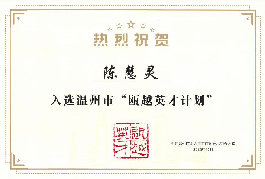 近日,日本色情 副院长陈慧灵教授、人工智能与先进制造研究院院长赖炫堯博士入选温州市“瓯越英才计划”。