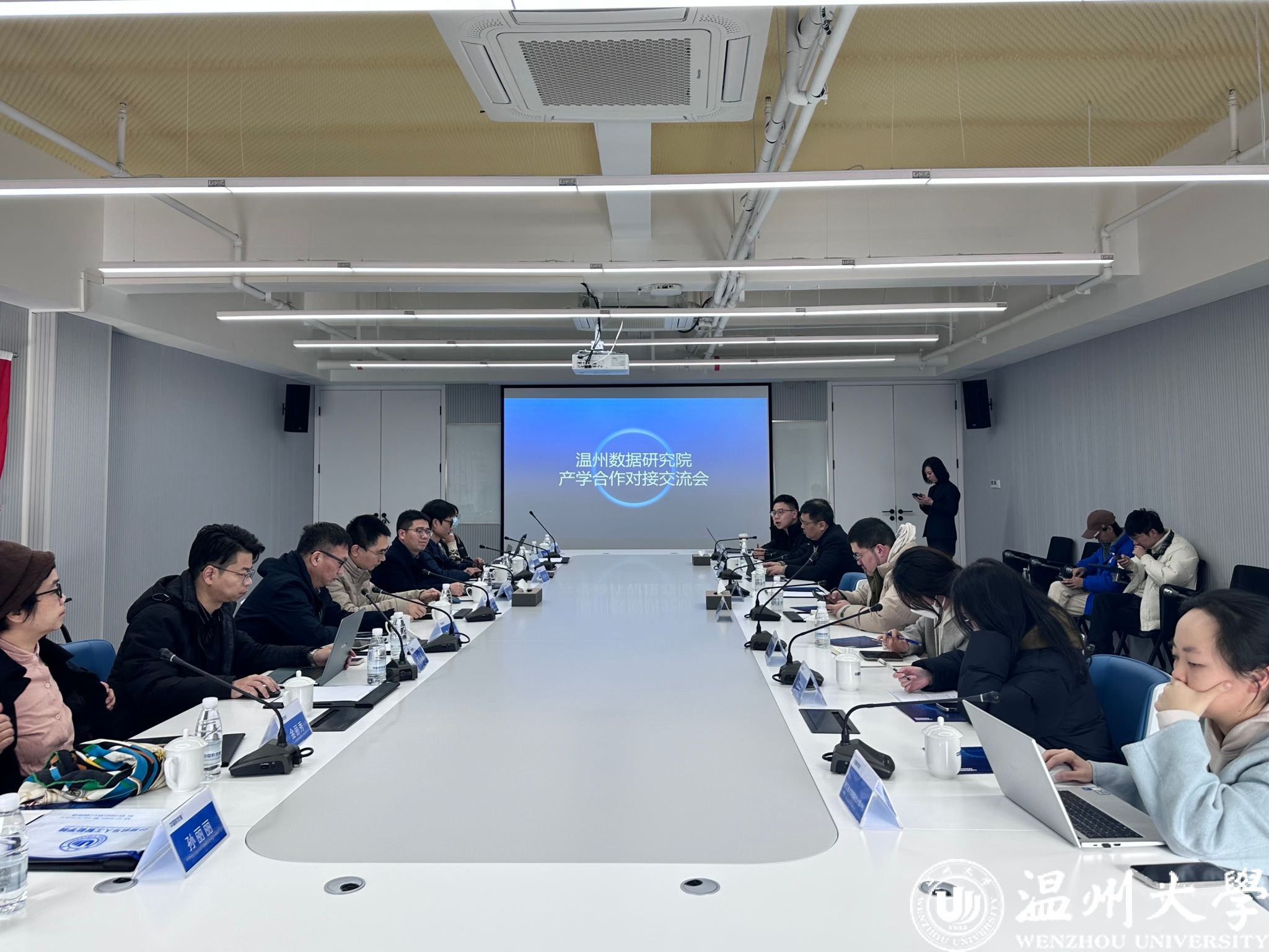 会议上,首先黄辉副院长对我校日本色情 发展沿革、学科现状、专业设置、办学特色和学生就业等情况进行介绍,同时介绍了我校与瓯海区人民政府拟合作共建的“温州数据研究院”发展规划和研究框架,希望借助此次对接交流,建立校企双方合作沟通渠道,为后续产学研合作做好准备。