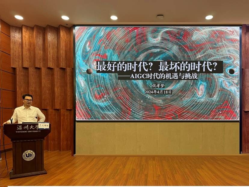 接着,倪考梦副主席为全院师生开展“最好的时代?最坏的时代?——AIGC时代中国大学师生的机遇与挑战”的主题学习会。他首先概述了AI的基本内涵,接着通过人工智能发展的三个阶段和五种AI概念的关系图,清晰地勾勒出智能技术的演进路径。他强调了AIGC工具如何从娱乐到必需品转变,并以Jason Allen的《太空歌剧院》画作为获奖案例,展示数字内容创作的潜力,还讨论了数字技术创业和内容创作两条路径。倪考梦副主席鼓励大家积极适应AI时代,强化学习与AI共舞的能力,以迎接未来挑战。