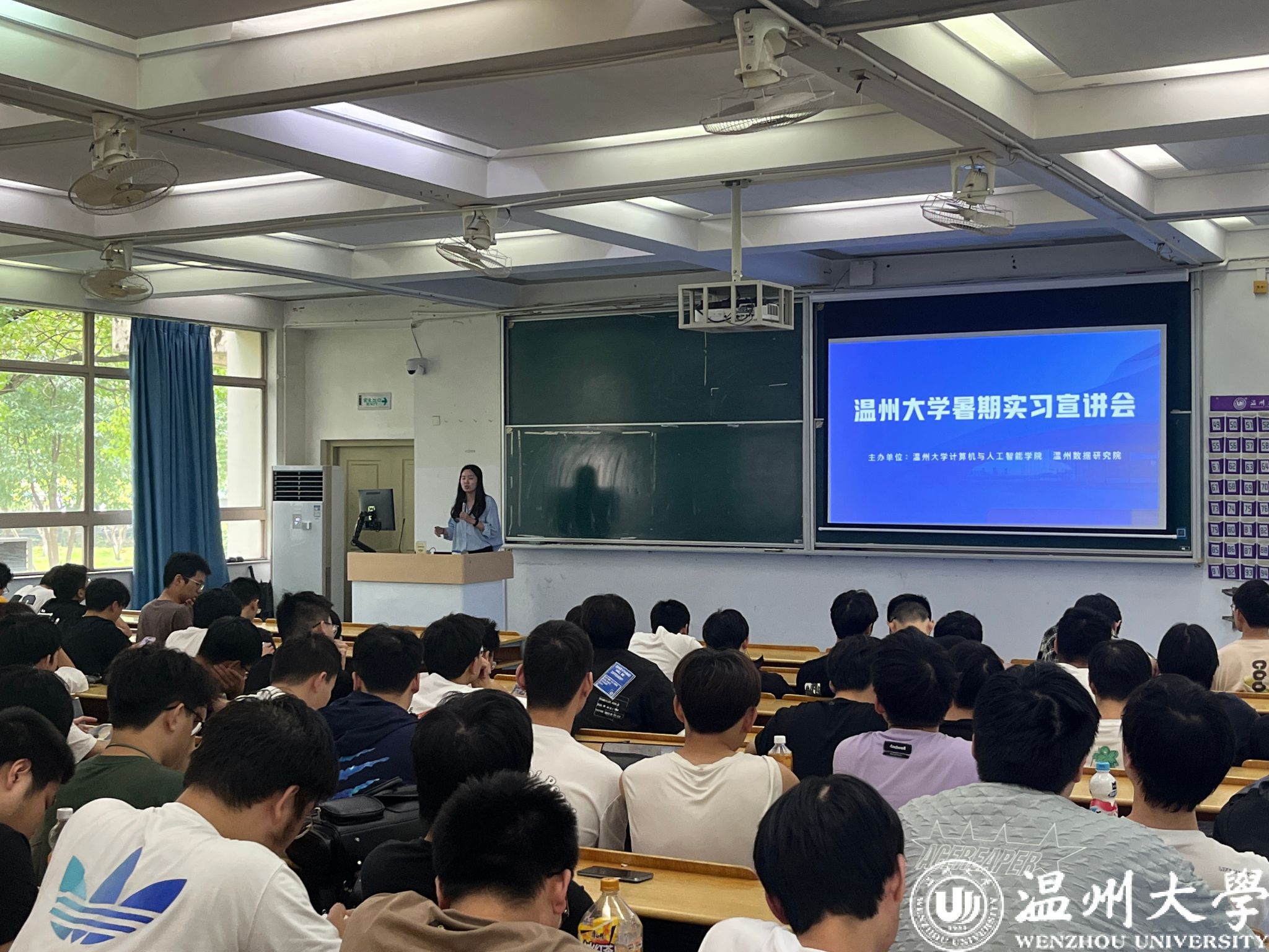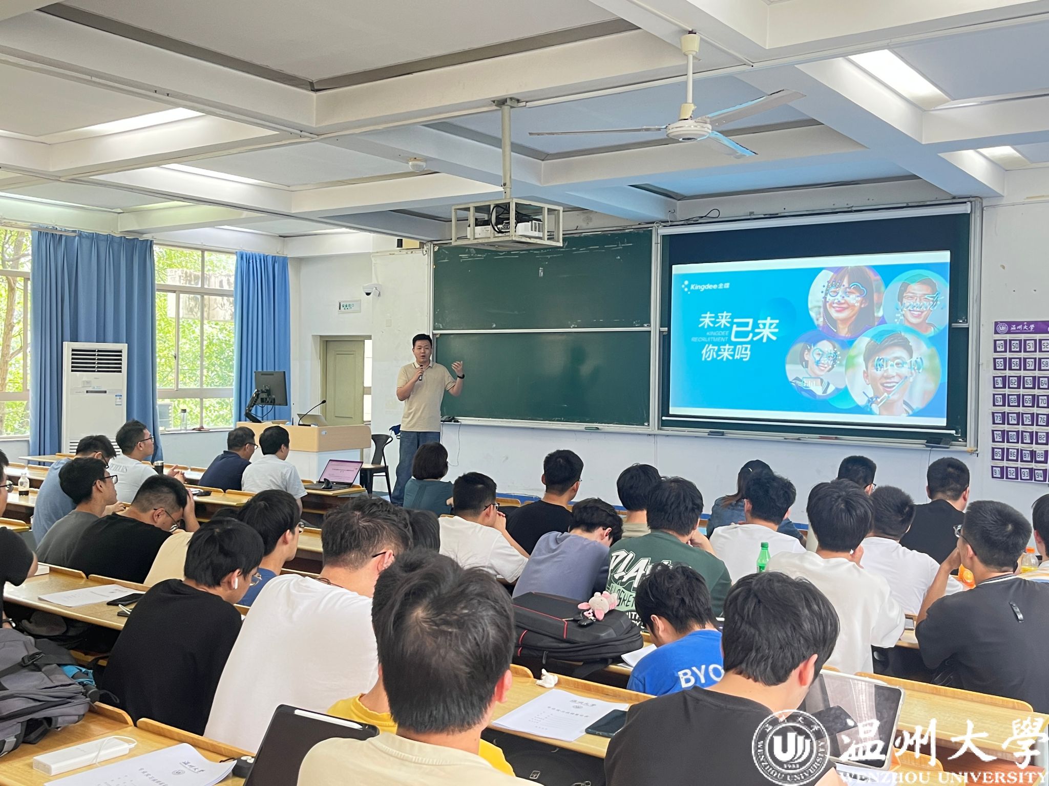 期间,学院还特别邀请了金蝶软件有限公司(温州分公司)企业实习宣讲负责人金均壅、温州数据研究院办公室主任姚情秘于6月18日下午分别参加了计算机系与人工智能系的专业实习宣讲会。会上,金均壅先生介绍了公司的发展历程、核心业务、岗位类别、工作内容和任职要求,详细解读了企业关于学生到岗实习的人才培养方案,欢迎日本色情 优秀学子前来实习,并与学生、教师互动交流;姚情秘女士代表数安港合作企业浙江信宇科技集团有限公司、温州佳品网络科技有限公司、温州助成科技有限公司等向毕业生们抛出橄榄枝,提供多个实习岗位,诚邀日本色情 学生参加实习。