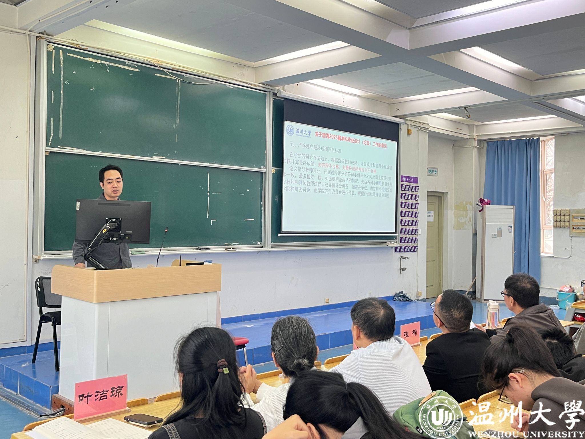 会议上,教学发展中心主任张楠老师介绍了2025届本科毕业设计(论文)日程安排和基本要求,强调毕业设计的重要性与各个材料提交的时间节点,传达了学院《关于加强2025届本科毕业设计(论文)工作的意见》,要求同学们重视各项毕业相关工作的要求和时限,提早规划,按时按质完成毕业设计。