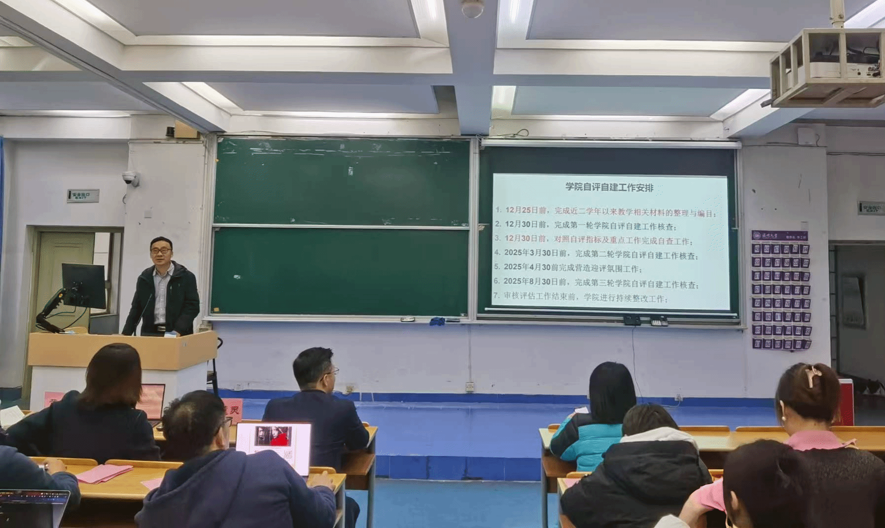 首先,全力书记重申了本科教育教学审核评估的重要性,要求全院上下要统一思想,提高认识,紧密配合,形成合力,以高度的责任感和使命感投入到审核评估各项工作中去。他强调,此次评估不仅是对学院教育教学工作的全面检验,更是推动学院教育教学改革和提升人才培养质量的重要契机。