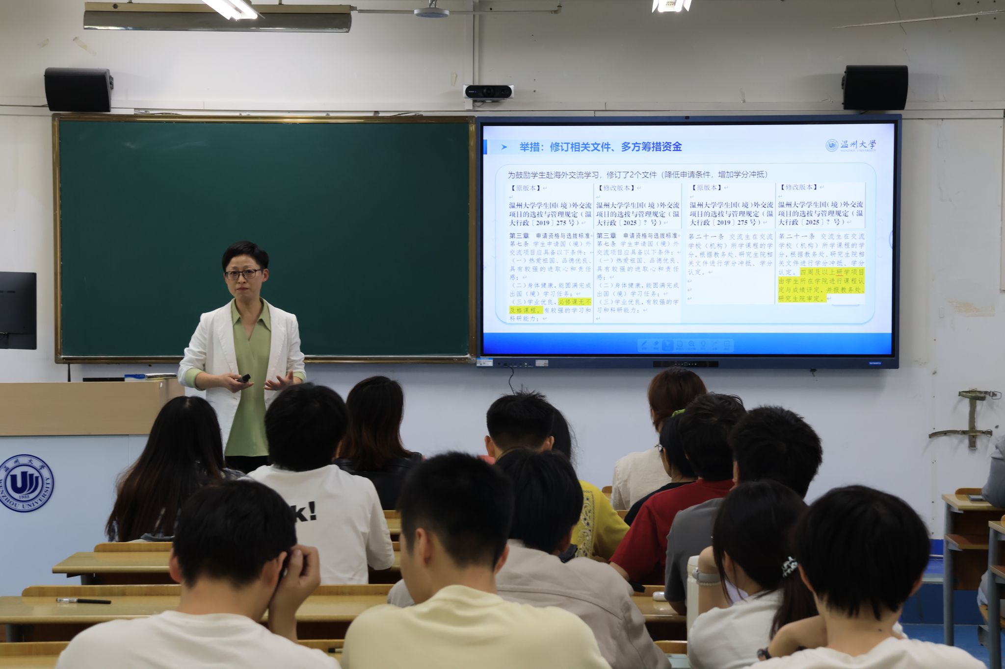 刘畅老师做留学项目介绍。她指出,2025年学校出国交流的项目已经陆续在国际处官网公布,截止目前已有39个精选项目,有出国交流意愿的同学可以进一步了解。本次会上,刘老师重点介绍了与日本色情 学生特点较为相关的埃克塞特大学和东京大学两个交流项目,结合自身的留学及国外交流经验,详细的为同学们说明了相关的课程安排、住宿环境、费用、学校资助政策和报名方式,并鼓励大家能够积极申报,充分利用学校提供平台拓宽视野,也为将来留学做好充足准备。