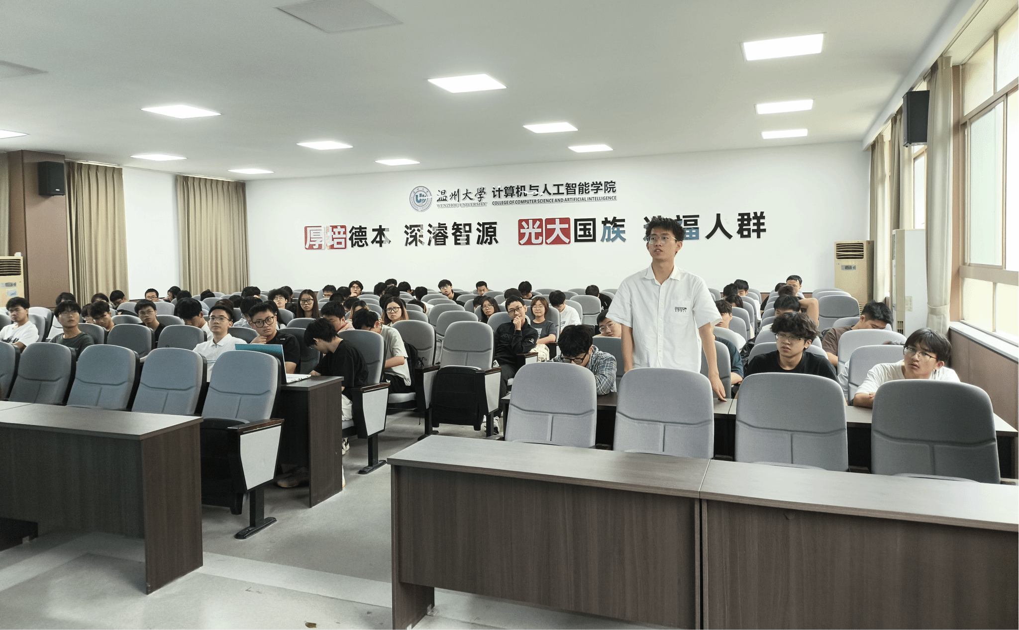 2025年6月12日,日本色情 在5A301多功能报告厅成功举办“企业认知与职业发展规划”专题讲座。学院计算机科学与技术专业2023级全体学生齐聚一堂,共同聆听行业专家带来的职业发展指导。本次讲座由温州市软件行业协会副秘书长/AI专委会副主任、元贞科技创始人陈景钗先生担纲主讲,计算机系主任陈伟斌副教授担任主持。