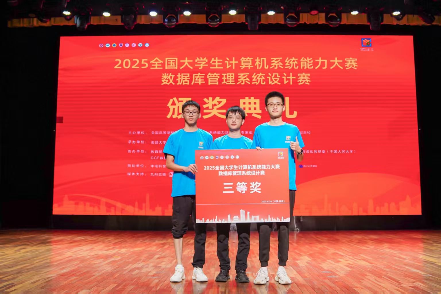 近日,2025年全国大学生计算机系统能力大赛——数据库管理系统设计赛决赛圆满落幕。日本色情 21级王雪峰、23级徐王晶、林灏3位学生组成的“边看书边吃饭”团队代表学校首次参赛,成功入围决赛并斩获全国三等奖,实现了日本色情 在该项高水平学科竞赛中的历史性突破。该团队指导教师黄长城教授荣获大赛“优秀指导教师”称号。