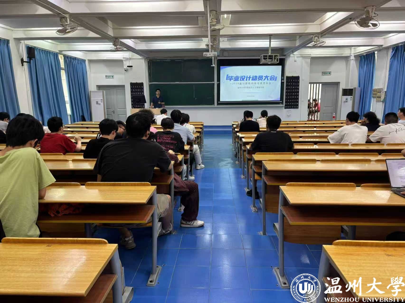 10 月 10 日下午,计算机系在 5A101 教室召开 2026 届计算机科学与技术专业毕业设计动员会。本次会议由计算机系主任陈伟斌老师主持,班主任邓若曦老师以及22 计算机毕业班全体同学参会。会上,就如何选题、提交时间、论文撰写模板、实物检查注意事项、查重以及AI代写等问题进行交流,为学生提供具体指导。系主任陈伟斌对 22 计算机毕业班同学提出三点要求:一、高度重视,认真对待:充分认识毕业设计的重要性,投入足够的时间与精力,避免敷衍了事;二、主动沟通,积极配合:加强与指导教师的沟通交流,定期汇报毕业设计进展,及时反馈遇到的问题,严格按照指导教师的意见修改完善;三、严守规范,诚信治学:严格遵守毕业设计的时间节点、格式规范与学术诚信要求,杜绝学术不端行为。