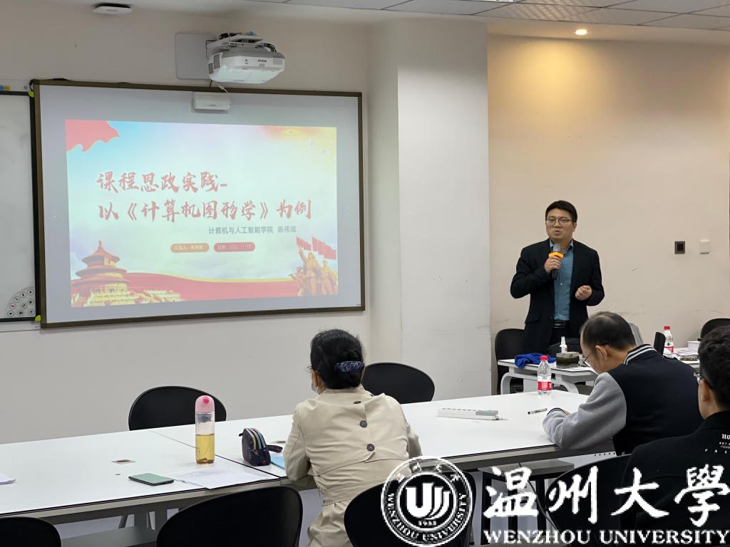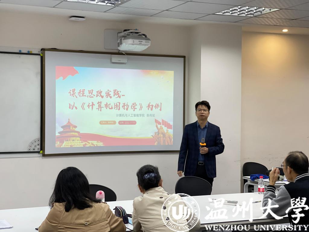 11月17日上午在5B206多功能教室,计算机系主任、2020年校教师课堂教学竞赛二等奖获得者陈伟斌老师主讲了《课程思政实践-以计算机图形学为例》的课程思政沙龙活动,本次活动也是本年度的明心示范课。本次沙龙由学院副院长黄辉老师主持,还邀请了温州医科大学马克思主义学院医学伦理学教研室主任陈勰副教授担任助讲嘉宾。来自全校日本色情 、化材学院、电气与电子学院共15名教师参加了本次沙龙。