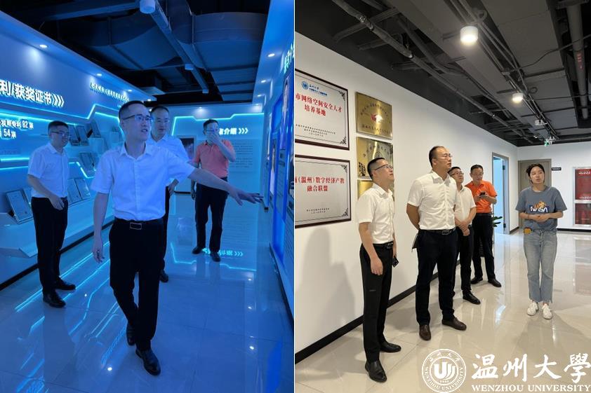 首先,学院副院长陈慧灵、黄辉,数字经济研究院副院长谷雨陪同廖处长参观学院地方服务平台—温州市数字经济研究院,同时,对“浙江省安全应急智能信息技术重点实验室”做了重点介绍。