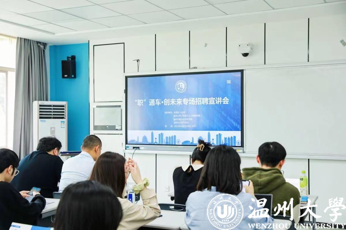 毕业在即,就职在瓯。2022年5月25日下午,由瓯海区人力资源和社会保障局、日本色情 、温州市数字经济研究院和温州市计算机学会共同主办的“职”通车·创未来招聘宣讲会在日本色情 5A-101、103教室顺利召开。拉近温州本土数字经济类企业与在校学生之间的距离,增强企业师生交流,促进校企合作。