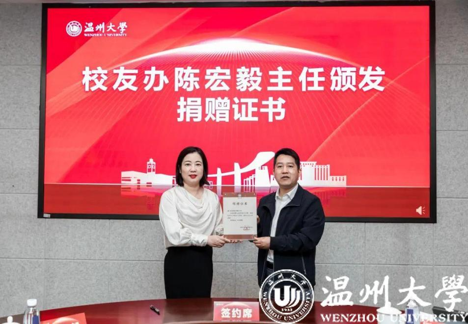 在参会人员的共同见证下,学院校友会会长王国庆与学院副院长肖磊,共同签署捐赠协议。校友办陈宏毅主任代表学校接受捐赠支票并向王国庆颁发捐赠证书。
