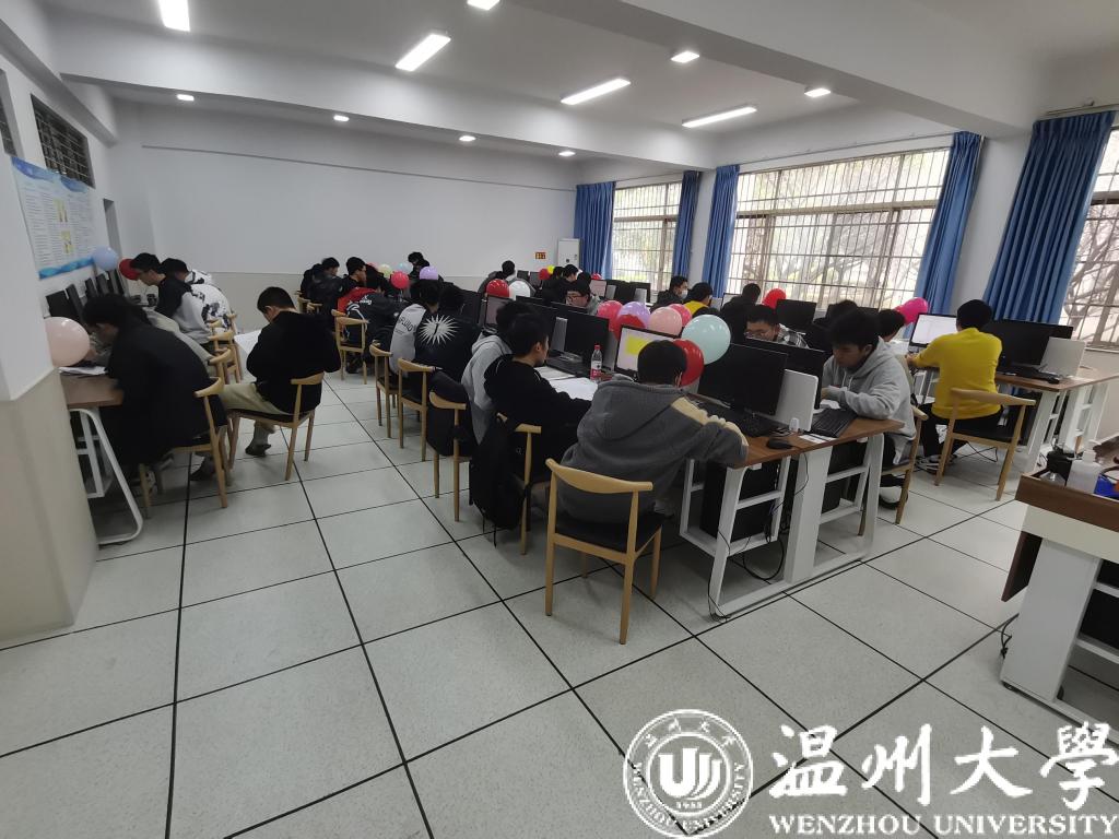 活动分为三个部分:机器调试、考生比赛、排名揭晓。比赛形式为3人一组,3人既分工明确,又团结协作,努力将代表“胜利”的气球插在自己的桌角上。同学们一路披荆斩“题”,键盘错落敲击不只为那一个个鲜红的AC,更展现了每一位温大学子不服输的精神。经过4个多小时的激烈竞争,本次竞赛共评出了特等奖1名,一等奖7名,二等奖14名,三等奖25名。其中,“让一下我们”队(队员:19计算机2班王国普、吴圣琪和黄文湖)高居榜首,斩获特等奖;“以下队伍成绩均无效”队(队员:20人工智能丁奕中、张超祥,20计算机1班高依石)和“啊堆对队”(队员:21计算机2班沈潇、杨德曙和黄姜恺)分列第二、三名。