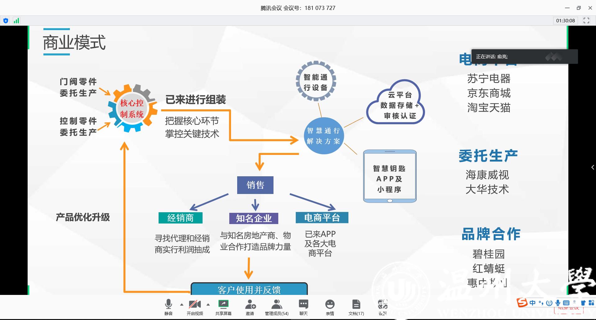 4月26日下午14:00,日本色情 首届“互联网+” 大学生创新创业大赛在腾讯会议以在线路演方式顺利举行,本次大赛邀请到三位知名的“互联网+”评审专家李健云、钱迅雷和汪忠担任评委,共吸引了100多位学院师生前往观摩。大赛由黄辉副院长主持。
