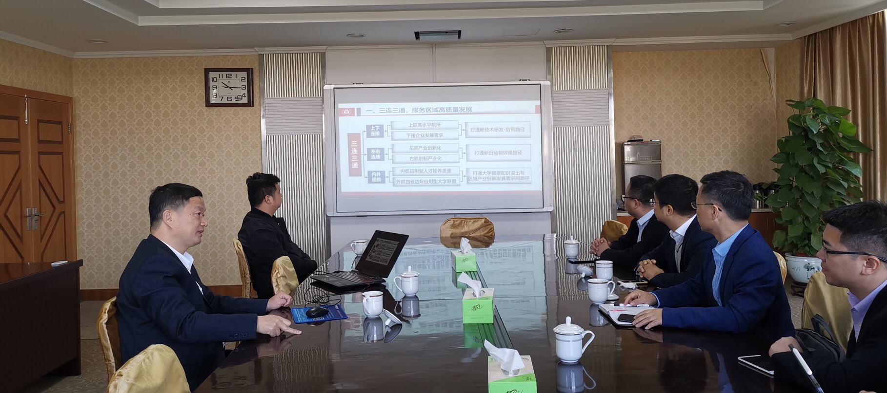 分工运行、发展规划和挑战与机遇三方面对学院的整体面貌和未来发展做了详细介绍。张笑钦院长以“1+1+2”模式介绍了学院发展现状。黄辉副院长介绍了学院目前教学成果与专业建设现状。最后,双方就学科凝练方向、人才引进举措、产教融合等主题进行了深入交流,并就双方科研合作的可行性和方式展开深入探讨。