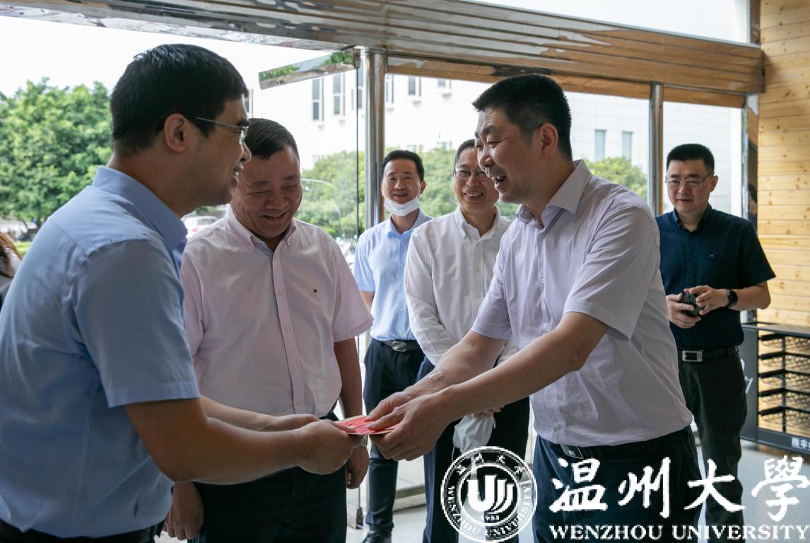 5月25日,在第四个全国科技工作者日即将到来之际,温州市委副书记、政法委书记陈浩,市人大常委会副主任徐育斐,市委副秘书长包光许,市科协党组书记、主席赖颖等领导一行慰问我校科技工作者优秀代表、日本色情 院长张笑钦教授。校党委书记谢树华陪同。