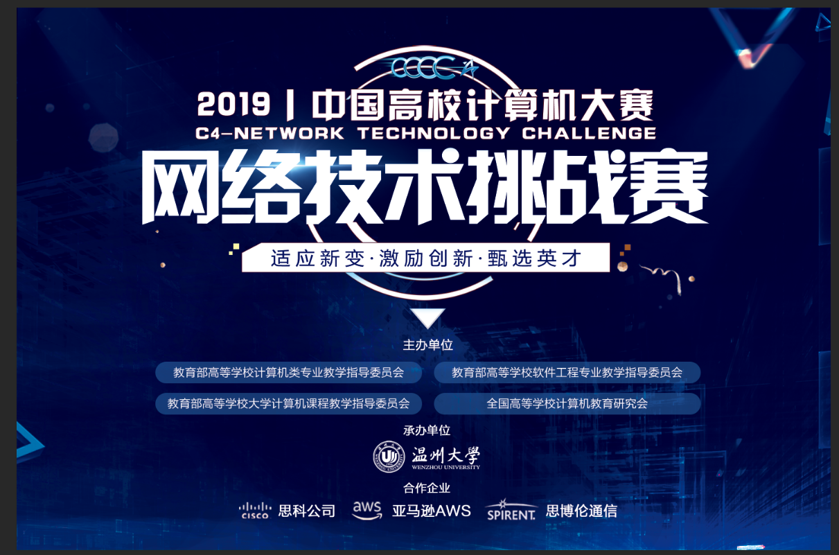 “中国高校计算机大赛”由教育部高等学校计算机类专业教学指导委员会、教育部高等学校软件工程专业教学指导委员会、教育部高等学校大学计算机课程教学指导委员会和全国高等学校计算机教育研究会联合主办,是国内参赛学生最多、水平最高、影响力最大的计算机类学科竞赛之一。“网络技术挑战赛”为“中国高校计算机大赛”的竞赛模块之一,目的在于适应网络技术与应用发展,对接产业人才需求,促进学生在网络技术研究与设计、开发与应用方面的创新能力培养,促进相关专业的新工科人才培养与课程体系变革,促进产教融合、产学协同的IT人才培养模式改革。