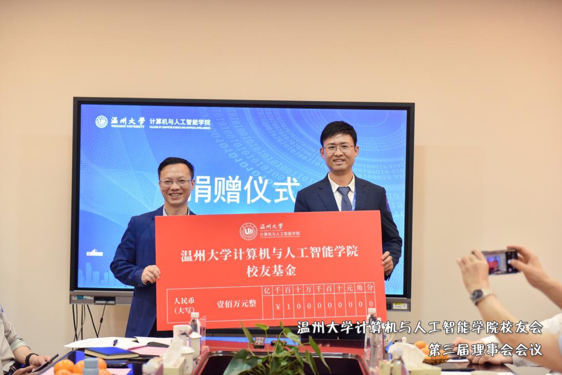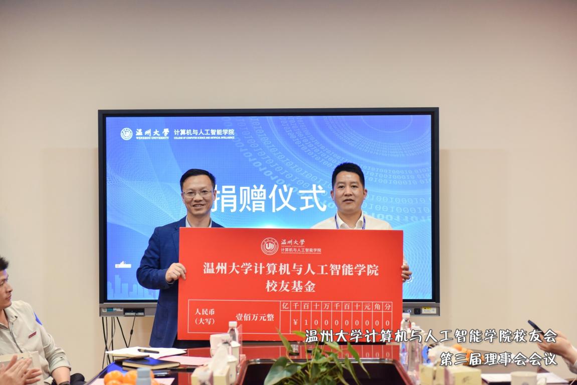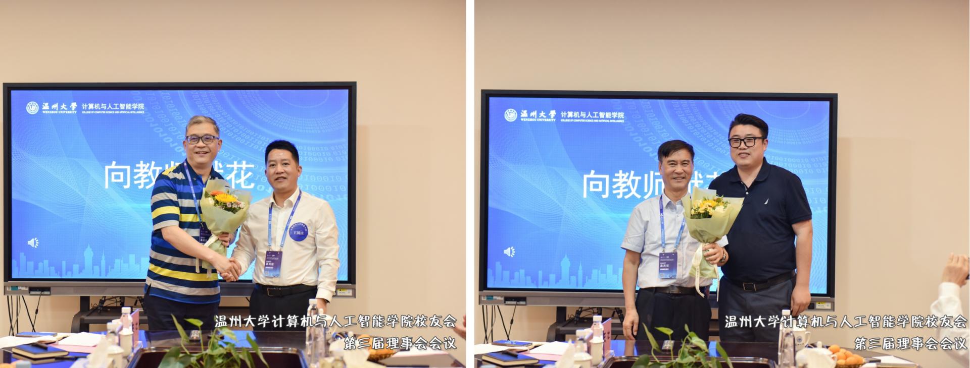 党委书记全力向参与校友基金捐赠的校友代表王国庆、胡雄炜颁发捐赠证书,感谢广大校友对学院发展事业的鼎力支持。