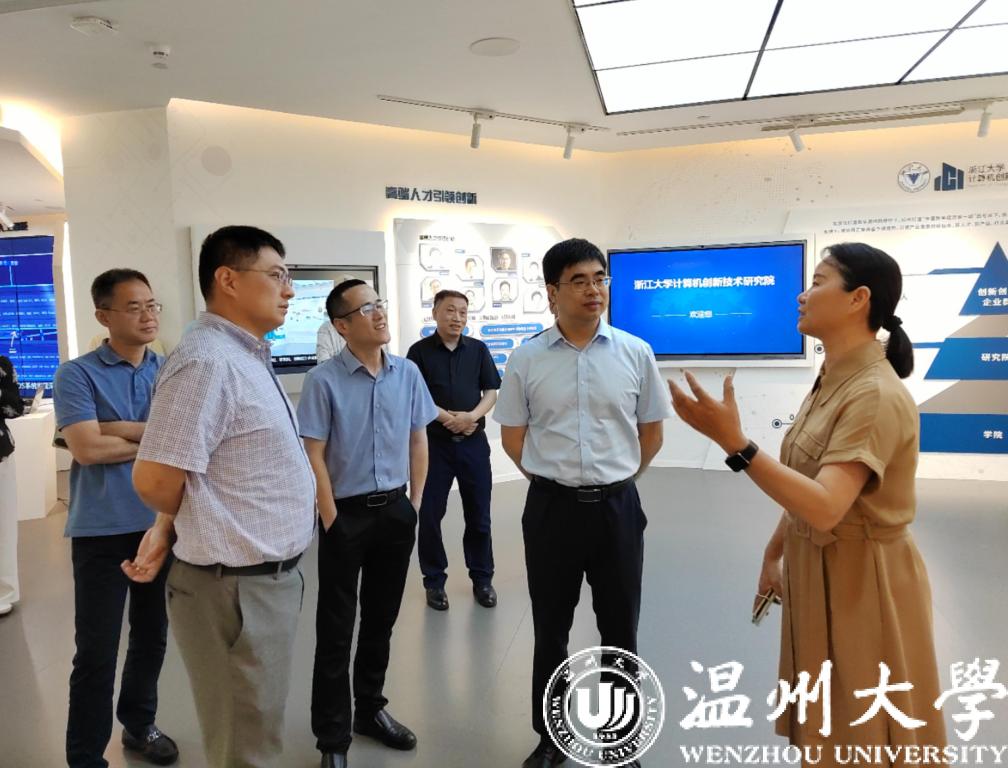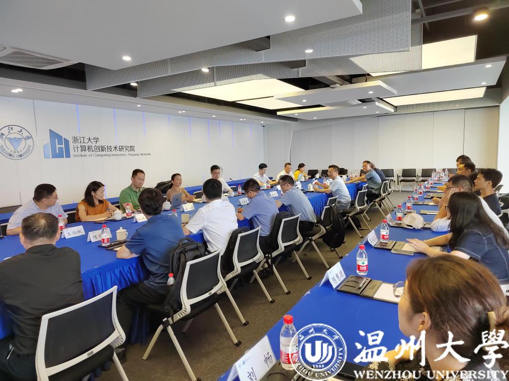 双方就项目合作、教学改革、创新创业科技成果转换等方面开展交流与座谈。座谈会上,陈刚院长围绕浙大计算机创新技术研究院的建设思路、建设进展与未来展望进行详细介绍。