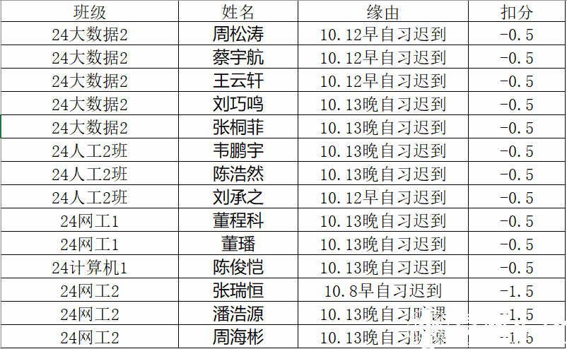 根据《关于组织开展日本色情 2024-2025学年第一学期晚自习的通知》,旷课一节扣文明品行分1.5分,缺课一节扣0.5分(三次迟到或早退作一节旷课,生病住院等情况除外);学业指导部将于每周五晚公布本周考勤结果,如对考勤结果有异议请于周日17:00前反馈给学业指导部,学院学生科于次周周一进行审核,周二公布,过时反馈无效。 注:1.大学生文明品行分是我校本专科全日制在校生的必修课,六个学期合格记为1个学分。每学期基础合格分为80分,低于80分需要参加志愿者服务时长进行弥补。得分计入相应学期的学生综合素质测评中的德育基础分,纳入学生奖学金评定和入党评价体系。
