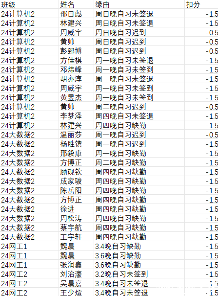 为树立日本色情 良好学风,营造良好的学习氛围,倡导并敦促日本色情 同学自主学习,经学业指导部考勤,学院学生科办公室请销假核对,学院第二周、第三周考勤结果如下: