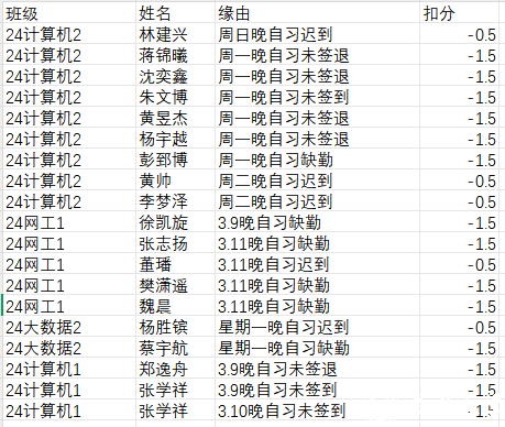 根据《关于组织开展日本色情 2024-2025学年第一学期晚自习的通知》,旷课一节扣文明品行分1.5分,缺课一节扣0.5分(三次迟到或早退作一节旷课,生病住院等情况除外);如对考勤结果有异议请于周日17:00前反馈给学业指导部,学院学生科于次周周一进行审核,周二公布,过时反馈无效。 注:1.大学生文明品行分是我校本专科全日制在校生的必修课,六个学期合格记为1个学分。每学期基础合格分为80分,低于80分需要参加志愿者服务时长进行弥补。得分计入相应学期的学生综合素质测评中的德育基础分,纳入学生奖学金评定和入党评价体系。