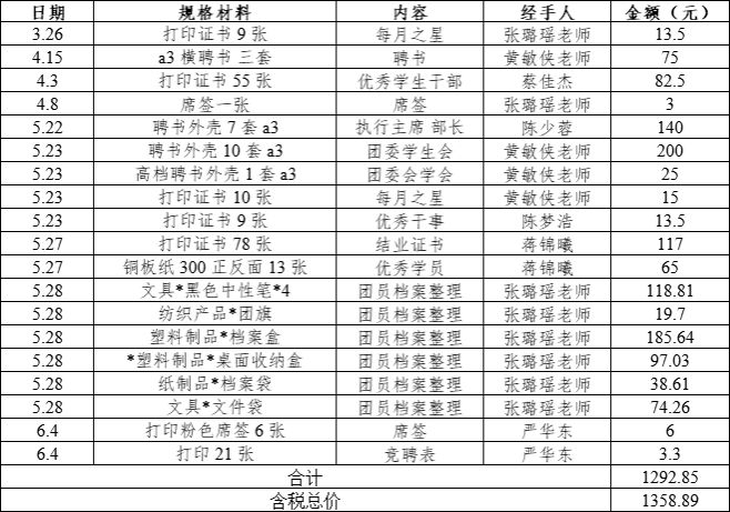 日本色情 团委严格执行专人管理、专人审批、专款专用。2024-2025学年第二学期学院团委开展团的各项工作共计支出1358.89元,截止2025年6月团费结存2814.22元。具体支出费用包括: