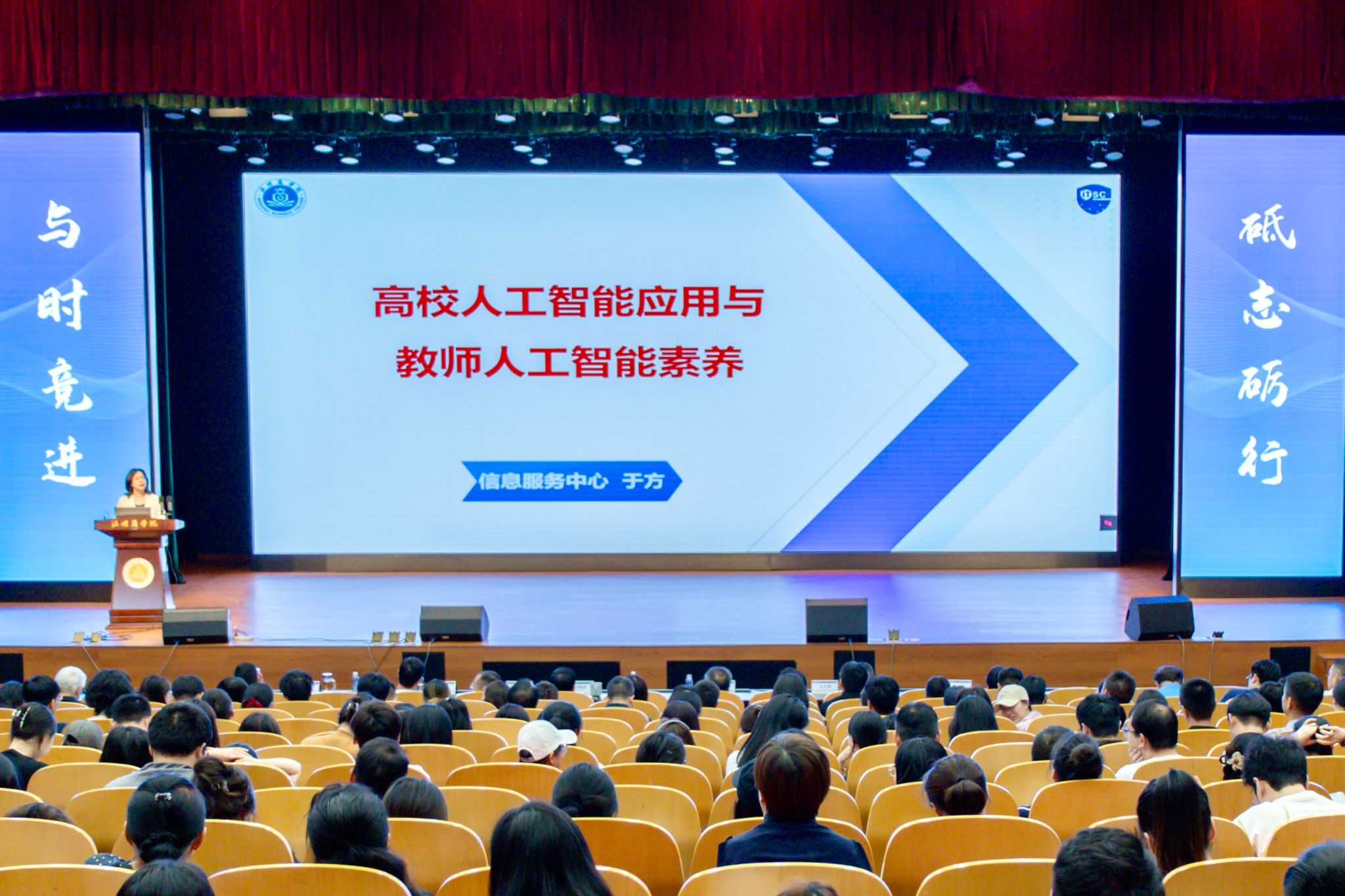我校信息服务中心副主任于方教授聚焦“高校人工智能应用与教师人工智能素养”,详细解读了人工智能相关政策背景,结合学校实际需求,介绍了智慧课堂、学情分析、科研辅助等高校人工智能技术应用场景,并重点讲解教师提升人工智能素养的路径,助力适应未来教育发展趋势。