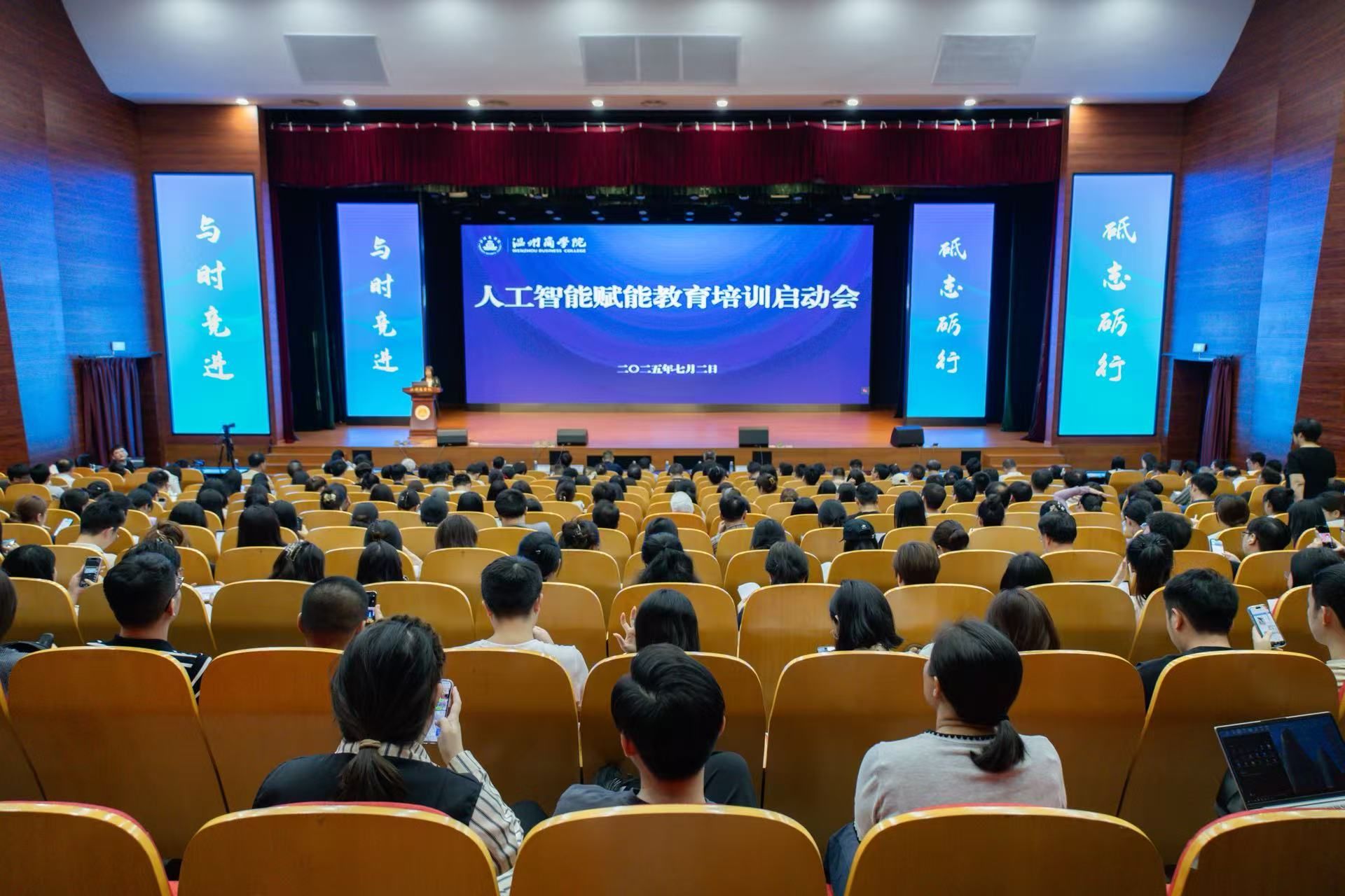 7月2日下午,我校举行人工智能赋能教育培训启动会。此次培训旨在促进人工智能技术与教育教学深度融合,助力提升全校教职工人工智能素养与应用能力。全体校领导、全体中层干部、全体教职工参加培训会,副校长白彦主持并部署暑期全员培训工作。