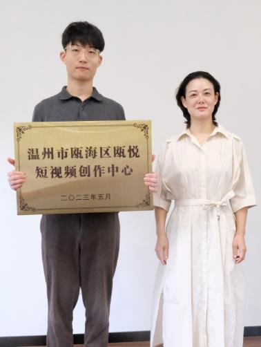 瓯海区委宣传部副部长林丹为瓯海区瓯悦短视频创作中心授牌仪式