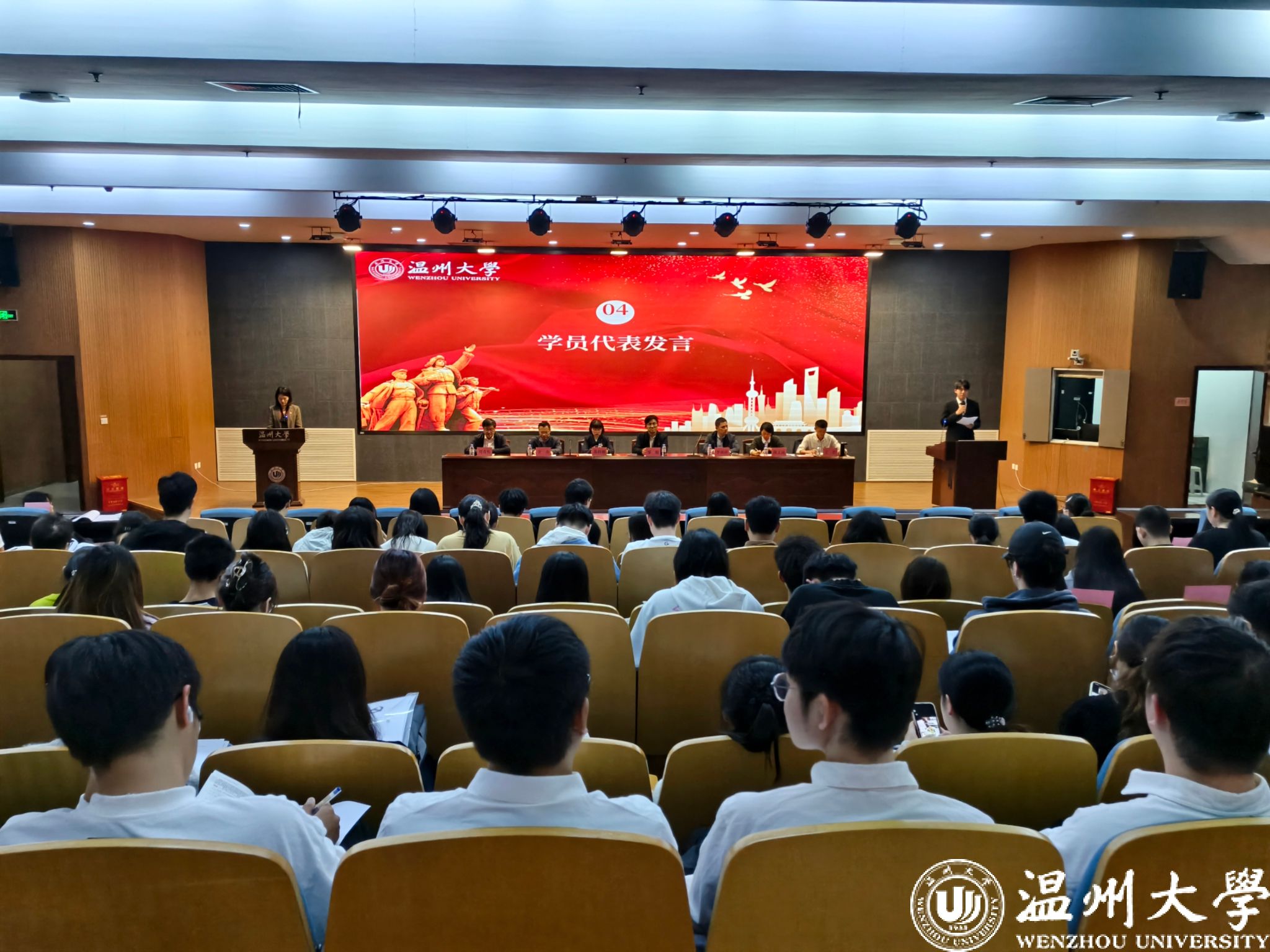 学员代表汪炜杰上台发言,他结合自身思想与学习经历,分享对加入中国共产党的向往与思考,表达了珍惜培训机会、认真学习党的理论、积极向党组织靠拢的坚定决心,展现了新时代青年学子追求进步、勇担使命的精神风貌。