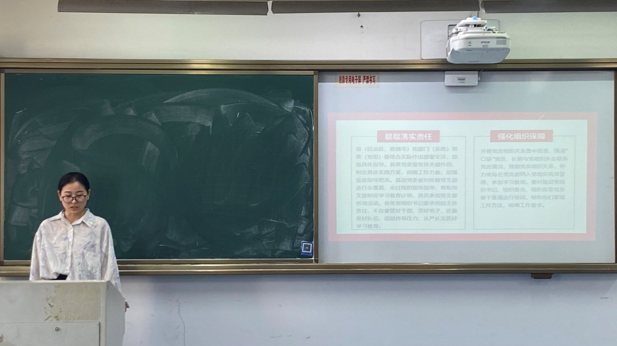 会上,罗珍珍同志分别从总体要求、学习教育内容、主要措施、组织领导、榜样力量五部分展开讲解。其次通过胡中山、陈步上等人物讲述了榜样的力量,使我们对党员的权利与义务有了更深刻的理解,告诫我们要自觉抵御剥削阶级腐朽思想的侵蚀,带头弘扬社会主义道德风尚,把共产党员的先进性在社会主义物质文明和精神文明的建设中充分发挥出来,按照党员的标准严格要求自己,始终保持思想上、行动上的先进性。最后,罗珍珍同志以问题抢答的方式作为本次学习会的结尾,让同学们对此次学习会的内容有了更为深刻的理解。