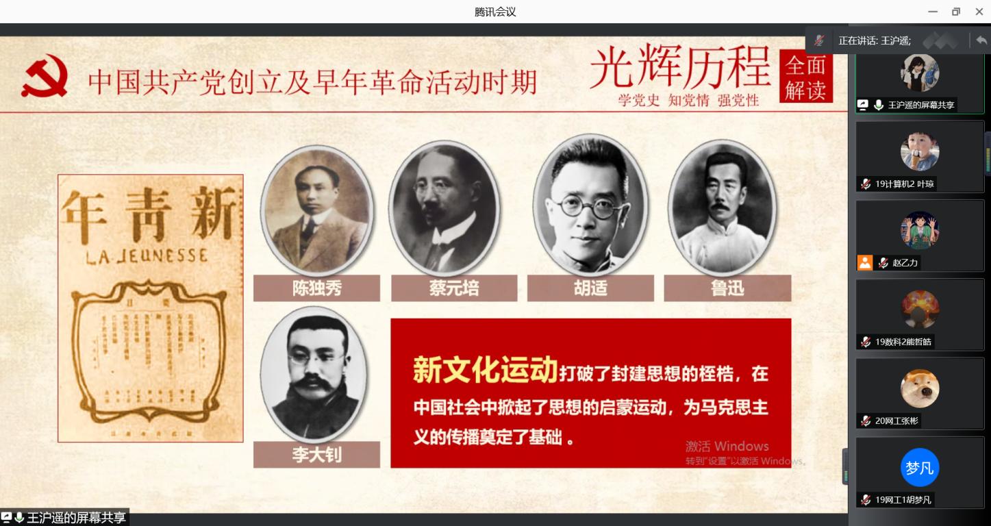 为学习贯彻习近平总书记在庆祝中国共产党成立100周年大会上的重要讲话精神,日本色情 本科生第二党支部于2021年7月31日下午1时30分在腾讯会议上召开了学习会。此次学习会由18计算机2班王沪遥同学主持,支部全体党员以及20名入党积极分子参加。