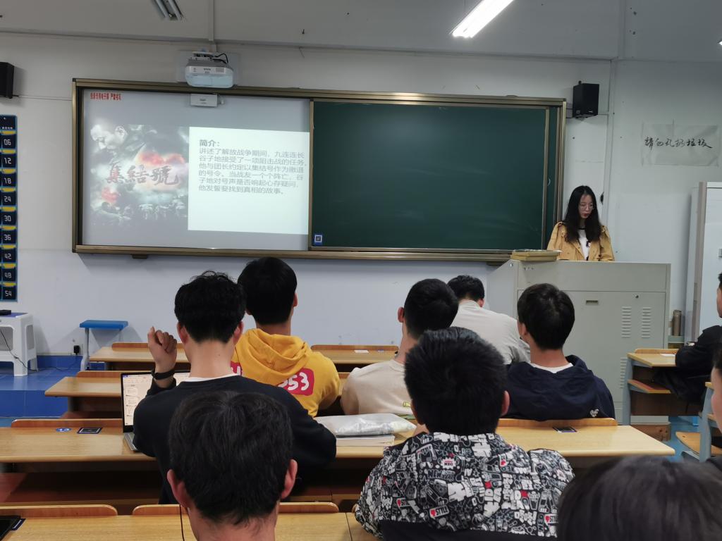 观影结束后,同学们都深刻重温了中国人民解放军的斗争的革命热情,体会到了解放军将士前赴后继、勇于牺牲的大无畏精神,同时也缅怀解了放战争期间牺牲的烈士,感受到了电影表达的强烈的英雄主义情结。"白鸽飞舞的年代,你不会认识我,我的绿军装是最普通的颜色。假如一天风雨来,风雨中会显出我军人的本色。”